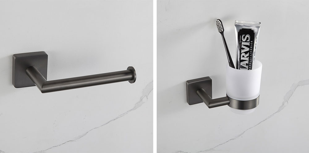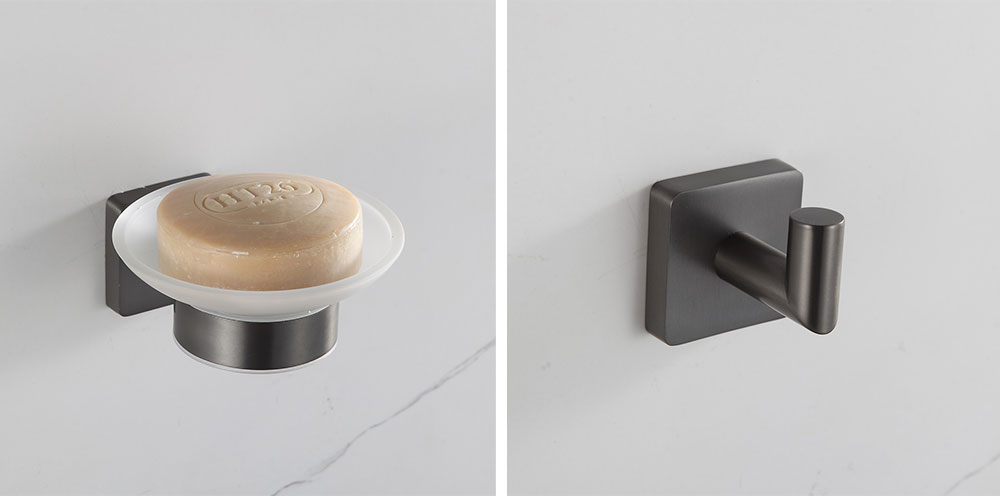 Versatile Set: Includes a towel bar, toilet paper holder, robe hook, soap dish, and tumbler holder to provide a complete bathroom accessory solution.