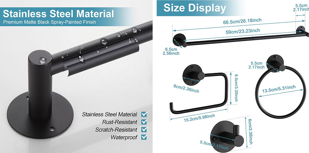 Matte Black Finish: Features a sleek matte black coating that adds a modern and elegant touch to any bathroom decor.