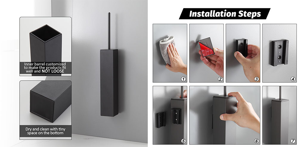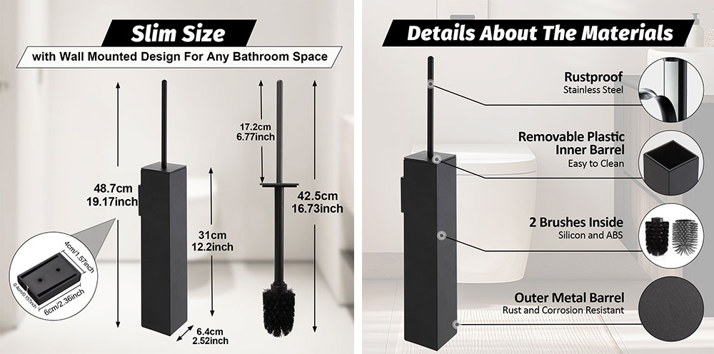 Sleek Design: This toilet brush features a modern, minimalist design with a matte black finish that complements any bathroom decor.
