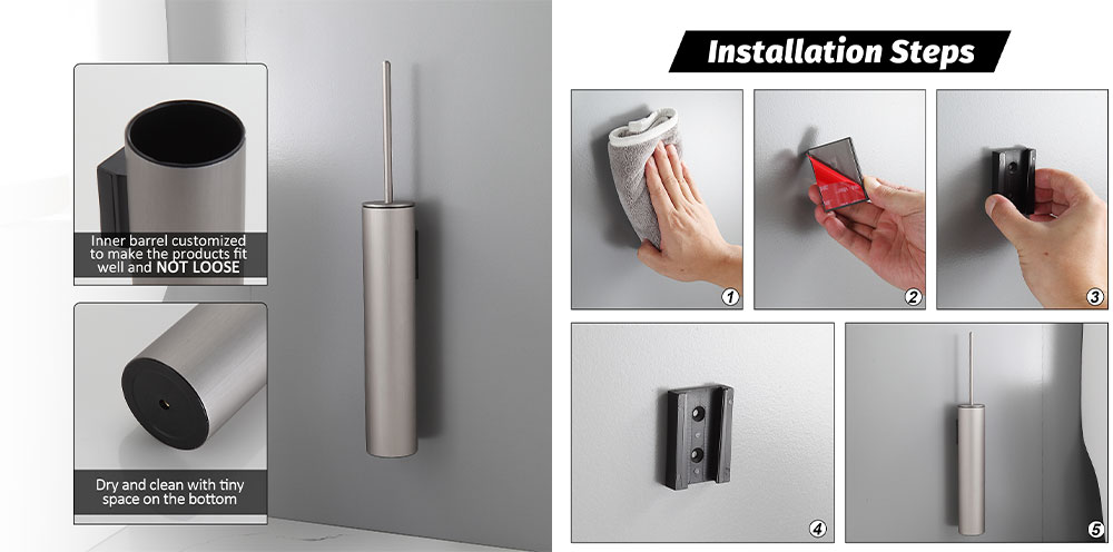 Wall-Mounted Convenience: Designed for wall mounting, it keeps your toilet brush off the countertop and floor, contributing to a cleaner and more organized bathroom.